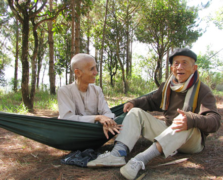 Thầy Tuệ Sỹ và nhà thơ Nguyễn Ðức Sơn (Ảnh: Thu Nguyệt)