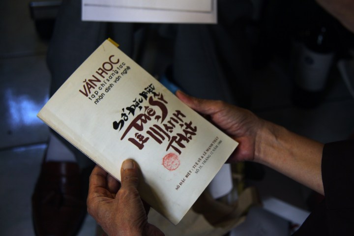Nhà văn nhà thơ Viên Linh đang giới thiệu đặc san Văn Học,
