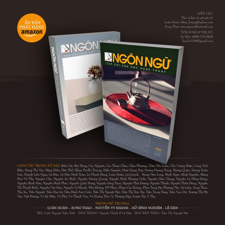 CỘNG TÁC TRONG SỐ NÀY: Biển Cát, Bùi Dũng, Cao Nguyên, Cao Thoại Châu, Chân Phương, Châu Yến Loan, Chu Vương Miện, Cung Tích Biền, Đặng Hiền, Đức Phổ, Elena Pucillo Truong, Hiền Nguyễn, Hoài Ziang Duy, Hoàng Hương Trang, Hoàng Quân, Hoàng Xuân Sơn, Huỳnh Liễu Ngạn, Lê Hân, Lê Hữu Minh Toán, Lê Thanh Hùng, Luân Hoán, Lữ Quỳnh, Mang Viên Long, Minh Ngọc, Minh Nguyễn, Mộng Hoa Võ Thị, Nguyên Cẩn, Nguyễn An Bình, Nguyễn Dương Quang, Nguyễn Đình Phượng Uyển, Nguyễn Hàn Chung, Nguyễn Lê Hồng Hưng, Nguyễn Minh Nữu, Nguyễn Minh Phúc, Nguyễn Quốc Hưng, Nguyễn Sông Trẹm, Nguyễn Thái Dương, Nguyễn Thành, Nguyễn Thiếu Dũng, Nguyễn Thị Thanh Bình, Nguyễn Văn Sâm, Nguyễn Vy Khanh, Như Không, NP Phan, Phạm Cao Hoàng, Phan Trang Hy, Phương Tấn, Sỹ Liêm, Song Thao, Thy An, Tiểu Nguyệt, Trần Dzạ Lữ, Trần Đình Sơn Cước, Trần Thị Nguyệt Mai, Trần Thị Trúc Hạ, Trần Trung Sáng, Trần Vạn Giã, Trương Thị Mỹ Vân, Việt Dương, Võ Kỳ Điền, Võ Phú, Võ Thạnh Văn, Vũ Hoàng Thư, Vy Thượng Ngã, Xuyên Trà, Y Thy.