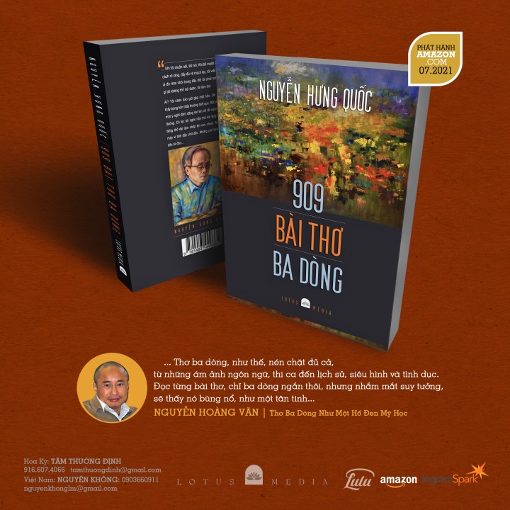 Chú thích: Tập 909 Bài Thơ Ba Dòng của Nguyễn Hưng Quốc do Lotus Media xuất bản, 2021, phát hành trên Amazon.com